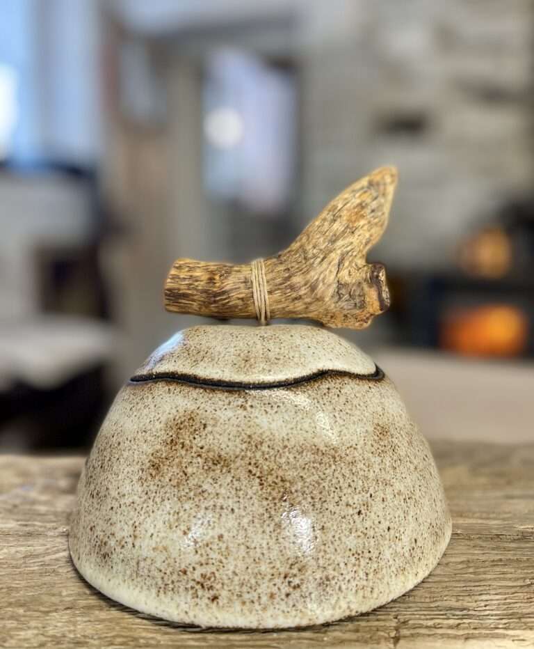 €65.00Nõu sobib hästi ruumisisustus elemendina ning samas kannab ka endas praktilist funktsiooni. Sobib kasutada nii toidu kui tarbeesemete hoidmiseks. Esemel on sise- ja välispind täielikult glasuuritud, mis tagab toidu lisamise võimaluse. Nupuks uhutud puit, mis kinnitatud takunööriga.