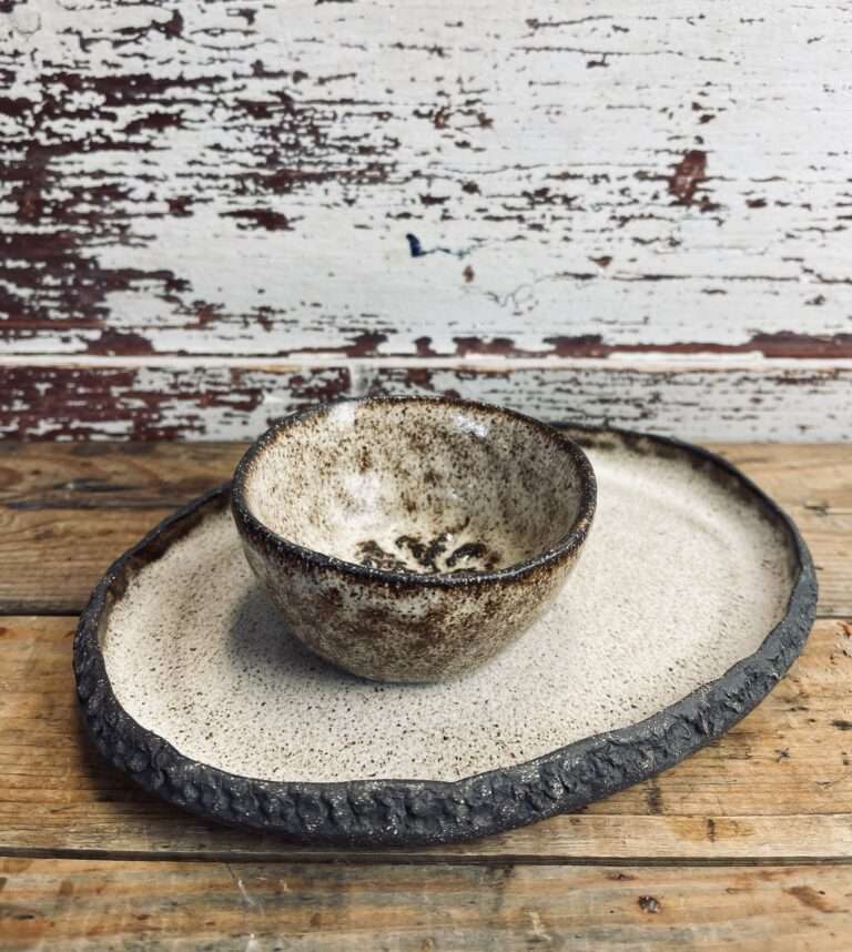 TUME KIVIKAUSS on loodud tumedast savist. Kausi sisepinnale on vajutaud kerge reljeef – muster, et lisada nõule eripära. Sobib tee joomiseks või kastmele. Kasutaja valib ise.